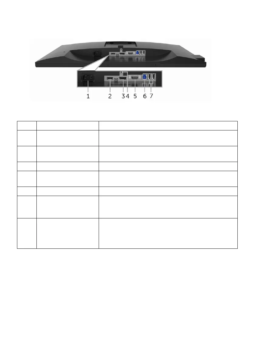 6 USB upstream port Connect the USB cable (shipped with your monitor)