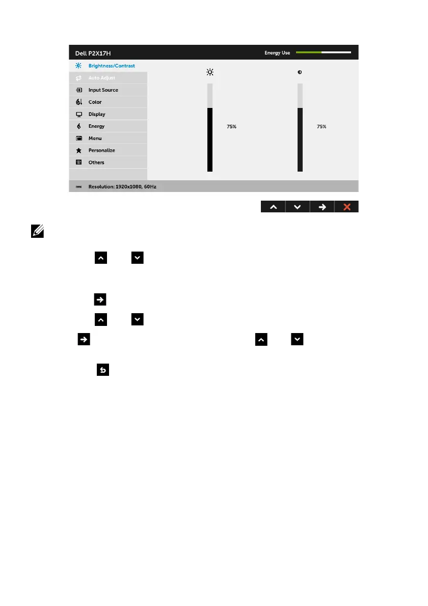 ess the and buttons to move between the setting options. As you move