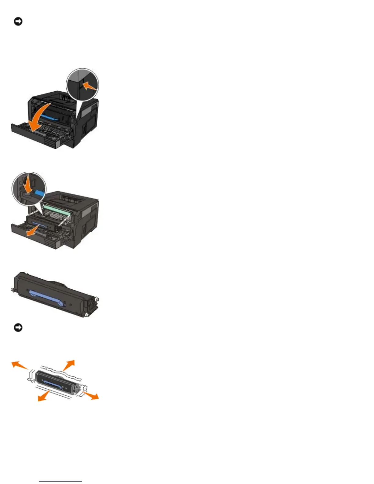 NOTICE: When replacing a toner cartridge, do not leave the new cartridge exposed to direct light for an extended