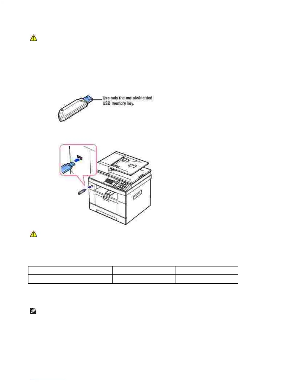 CAUTION: Do not remove the USB memory key during scanning operation. This may