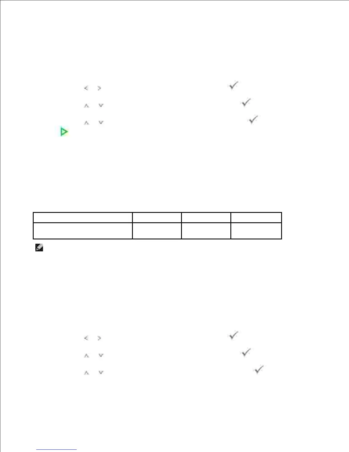 The following table shows the options you can select.