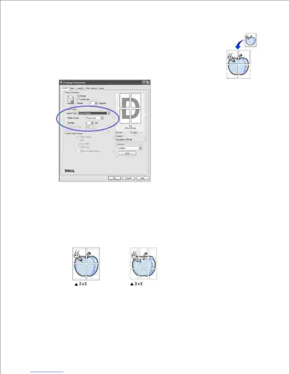 You can print a single-page document onto 4, 9, or 16 sheets of paper, for the purpose of