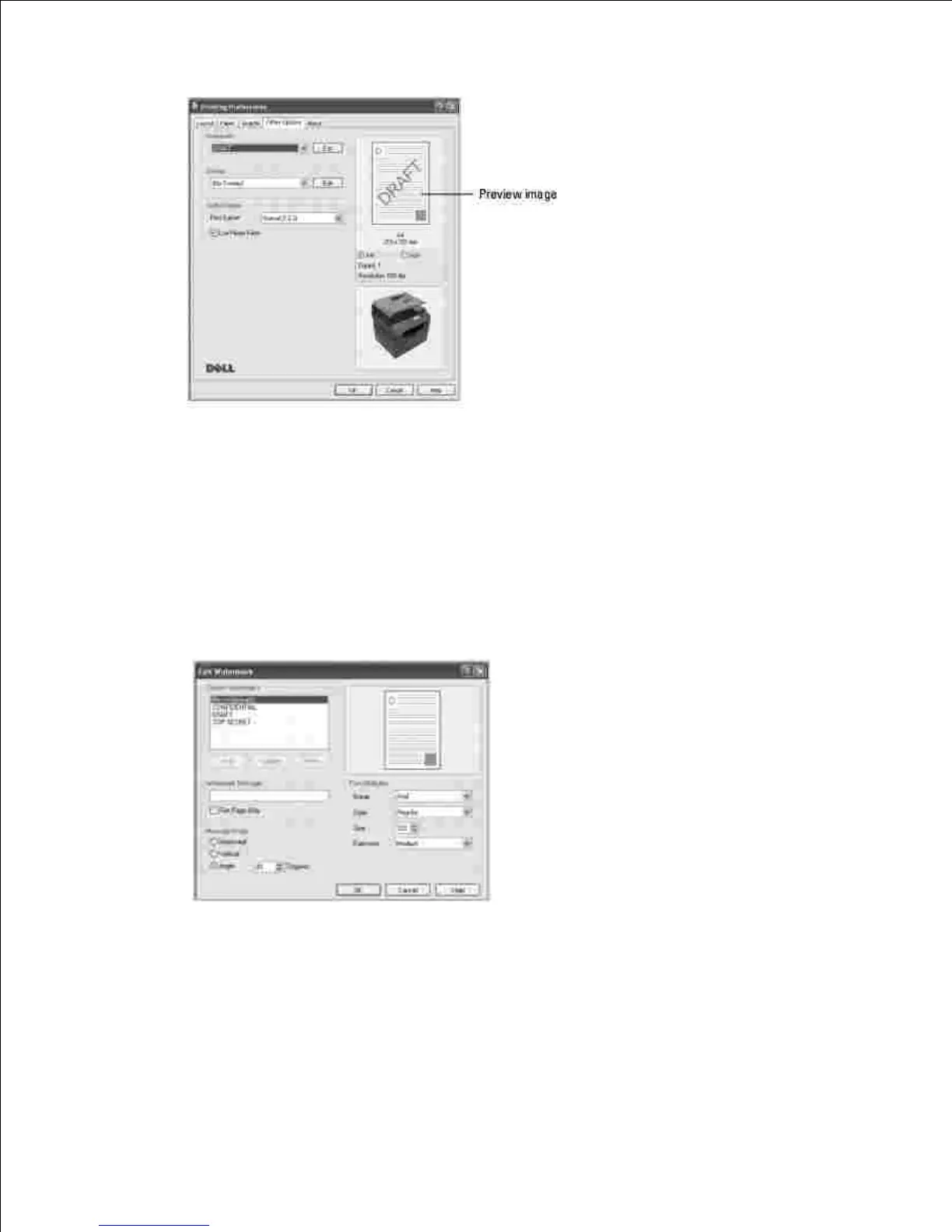 Enter the text message you want to print in the Watermark Message box.3.