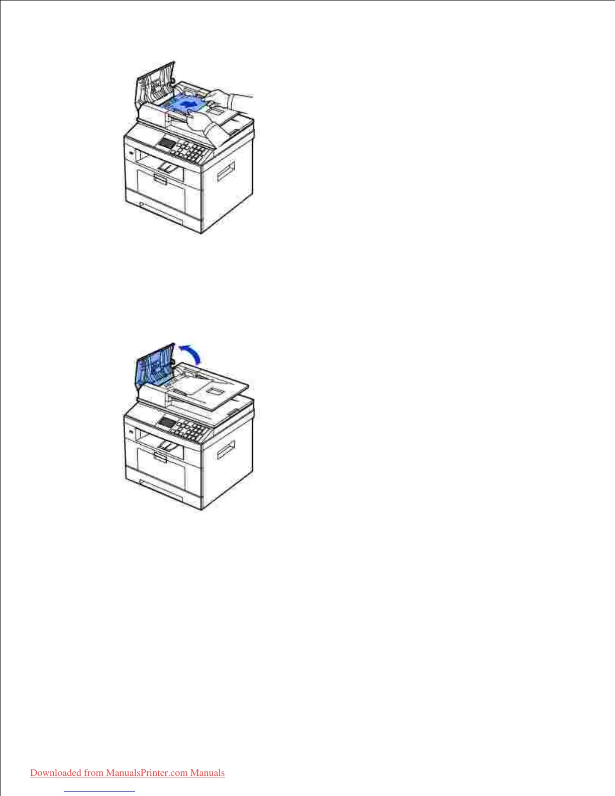 Open the document input tray upwards and pull the document gently out of the DADF.b.