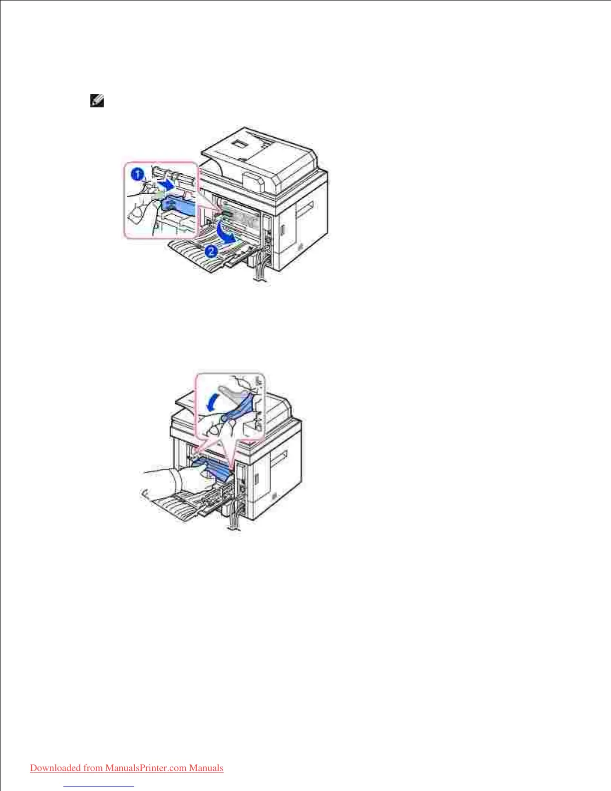 Return the levers, fuser door, and duplex guide to their original position.9.
