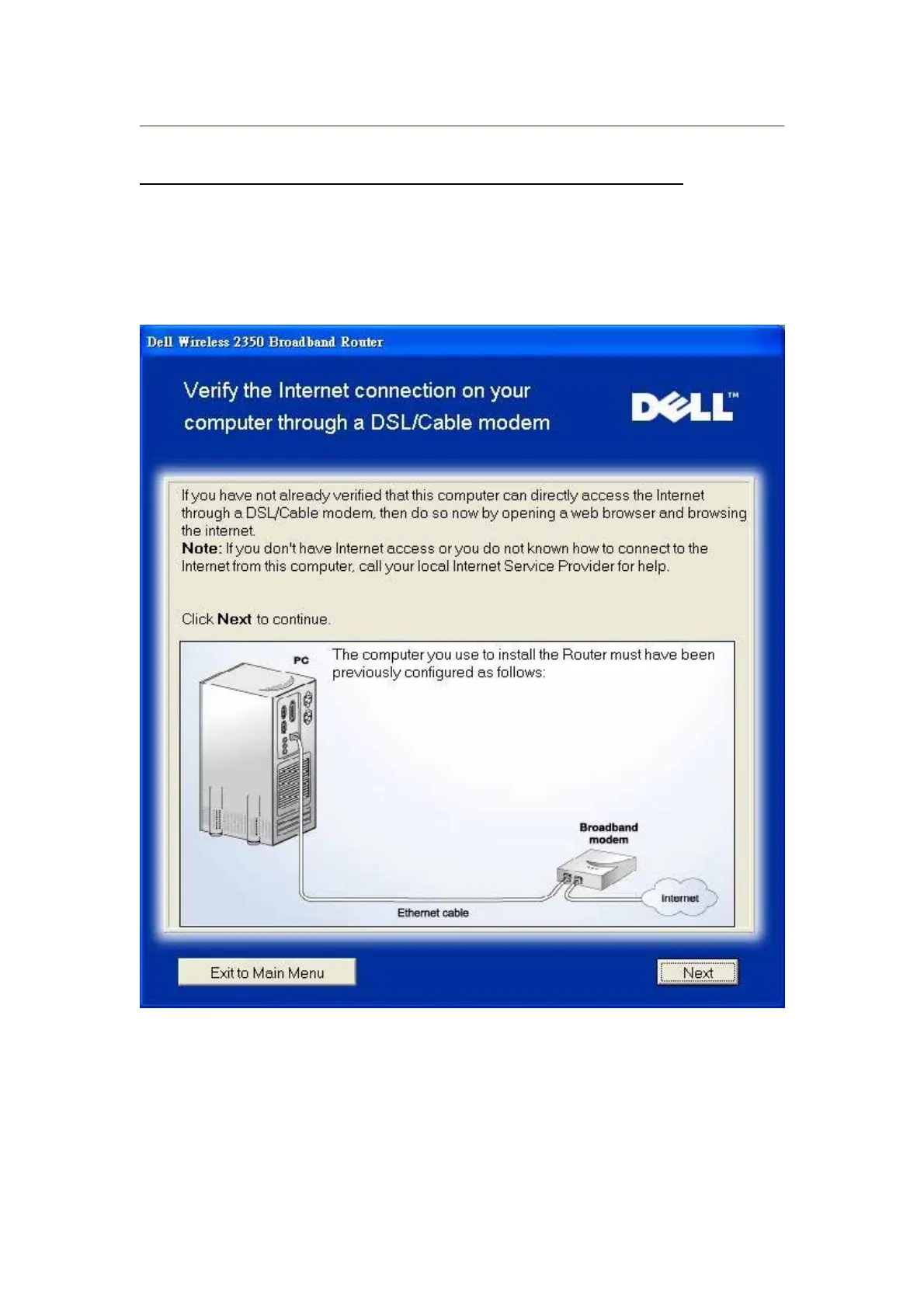 To install your Dell Wireless 2350 Broadband Router, please verify that this computer can