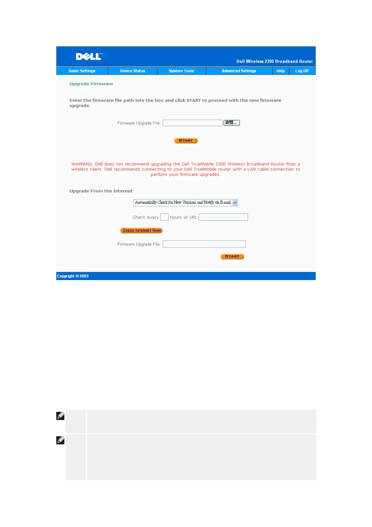 Dell does not recommend upgrading the Dell Wireless 2350 Broadband Router