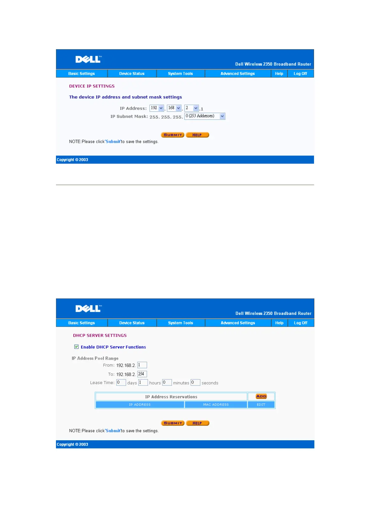 Dell 2350 - DHCP Server Settings