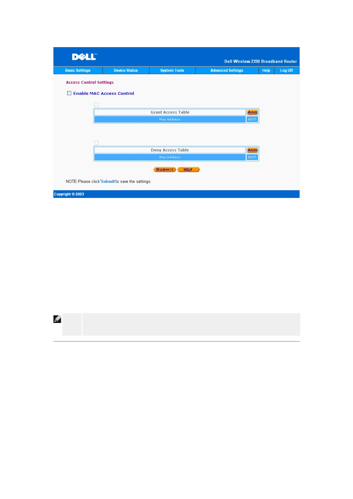 1. Click to select Enable MAC Access Control.