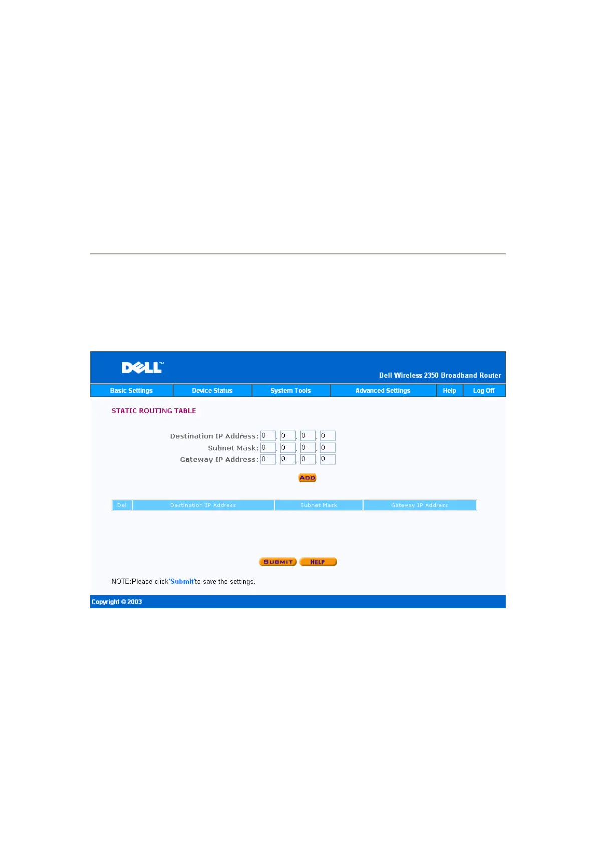 7. Click the Submit button to activate the setting.