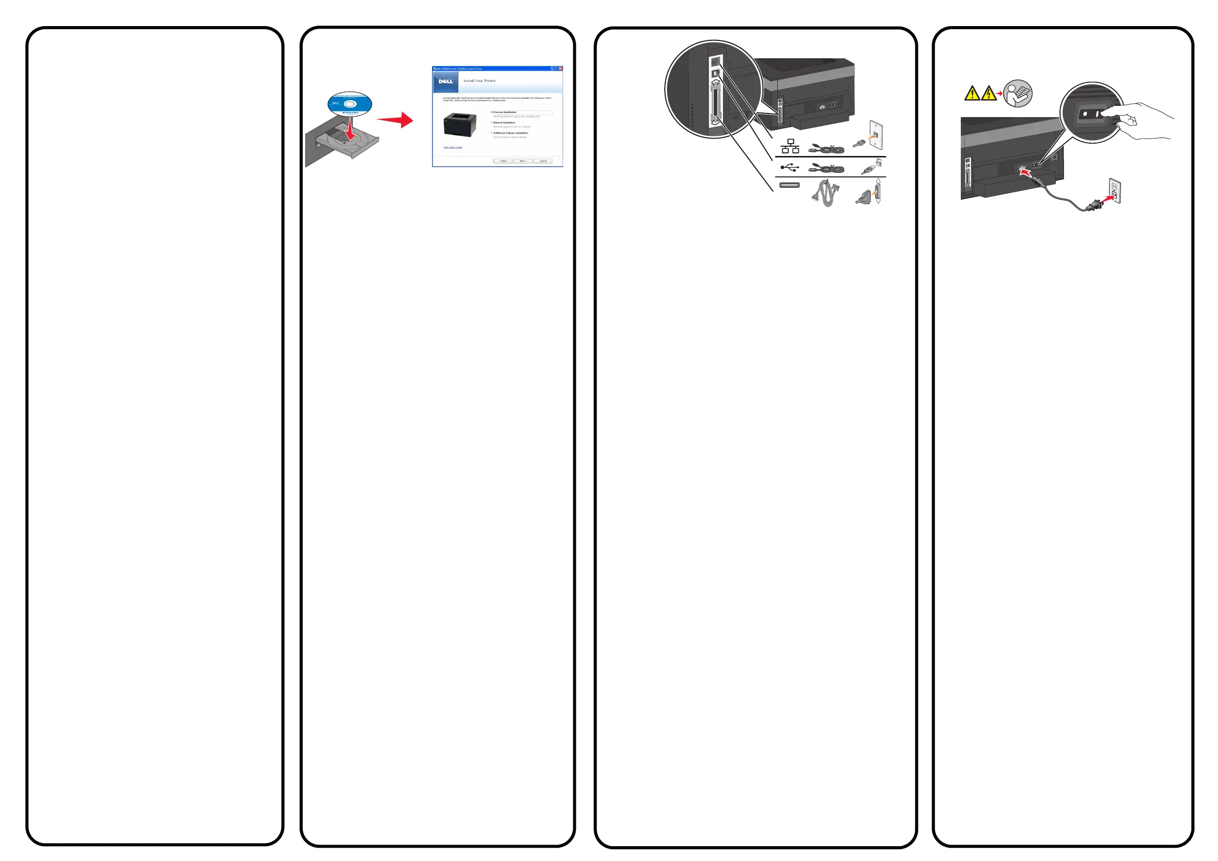of een netwerk (alleen 2330dn en 2350dn) aan. Kabels worden niet