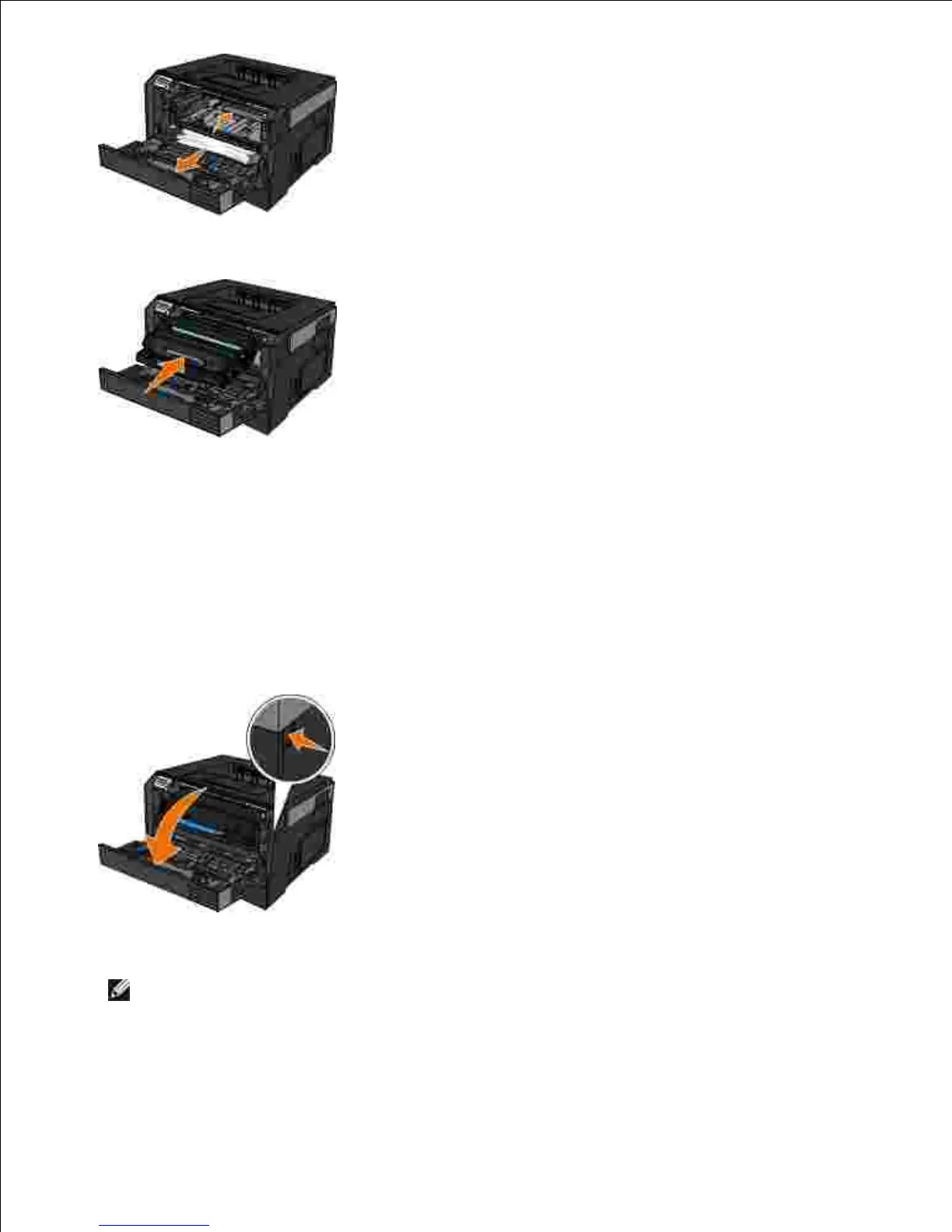 Open the front cover by pressing the button on the right side of the printer and lowering the cover.1.