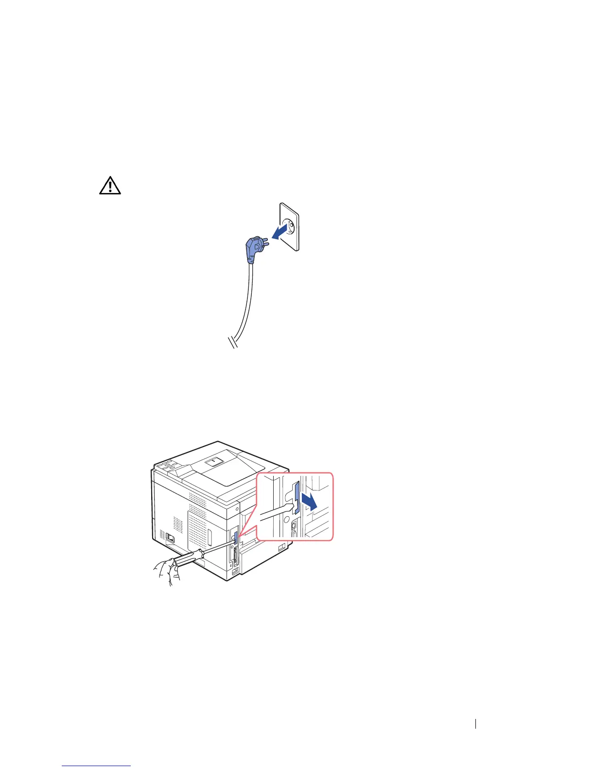 CAUTION: Failure to unplug the printer could cause damage to the printer.