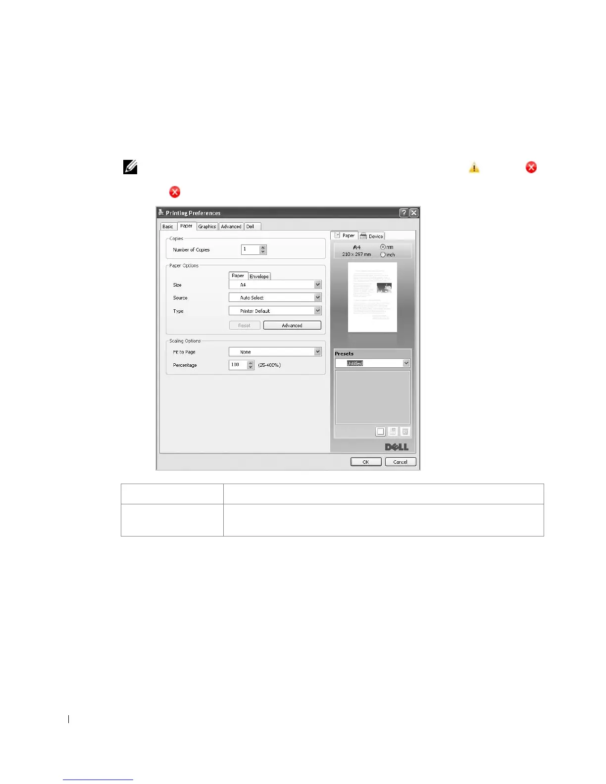 and ( ) mark means you cannot select that option due to the printer’s setting or environment.