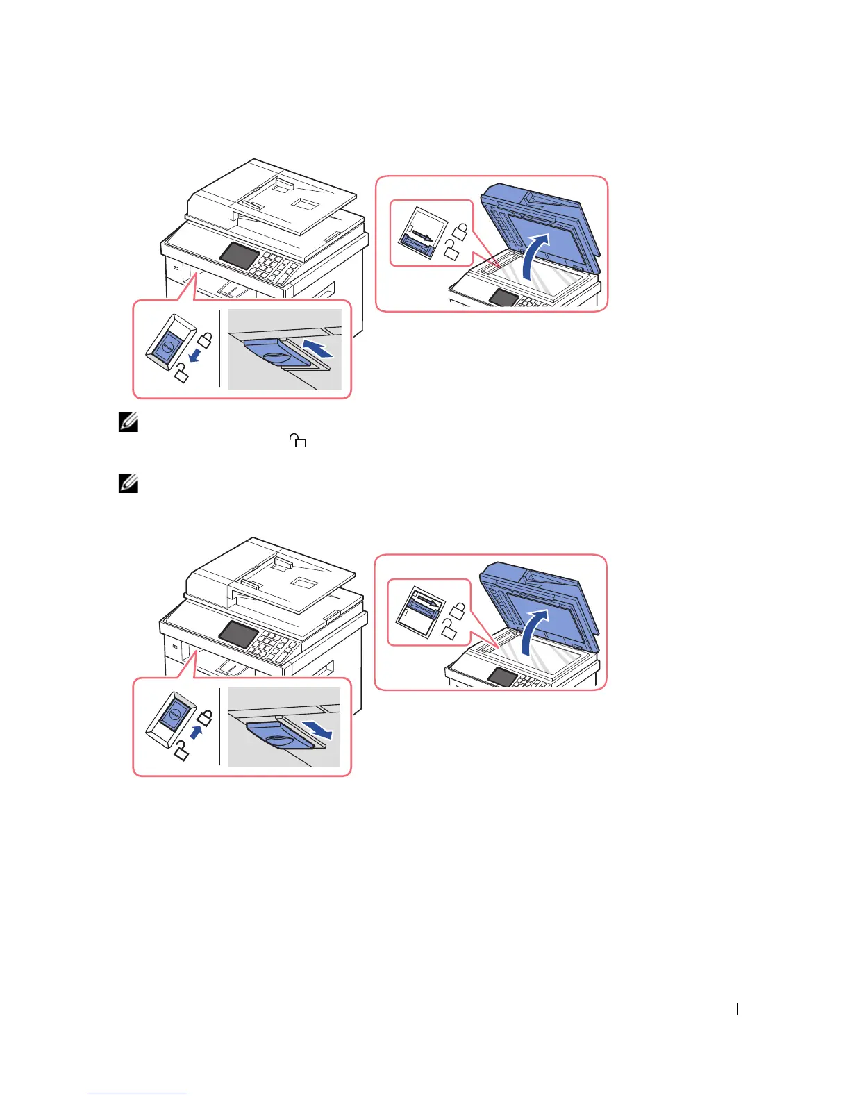 NOTE: To confirm the scanner is unlocked, open the scanner cover and ensure that the blue