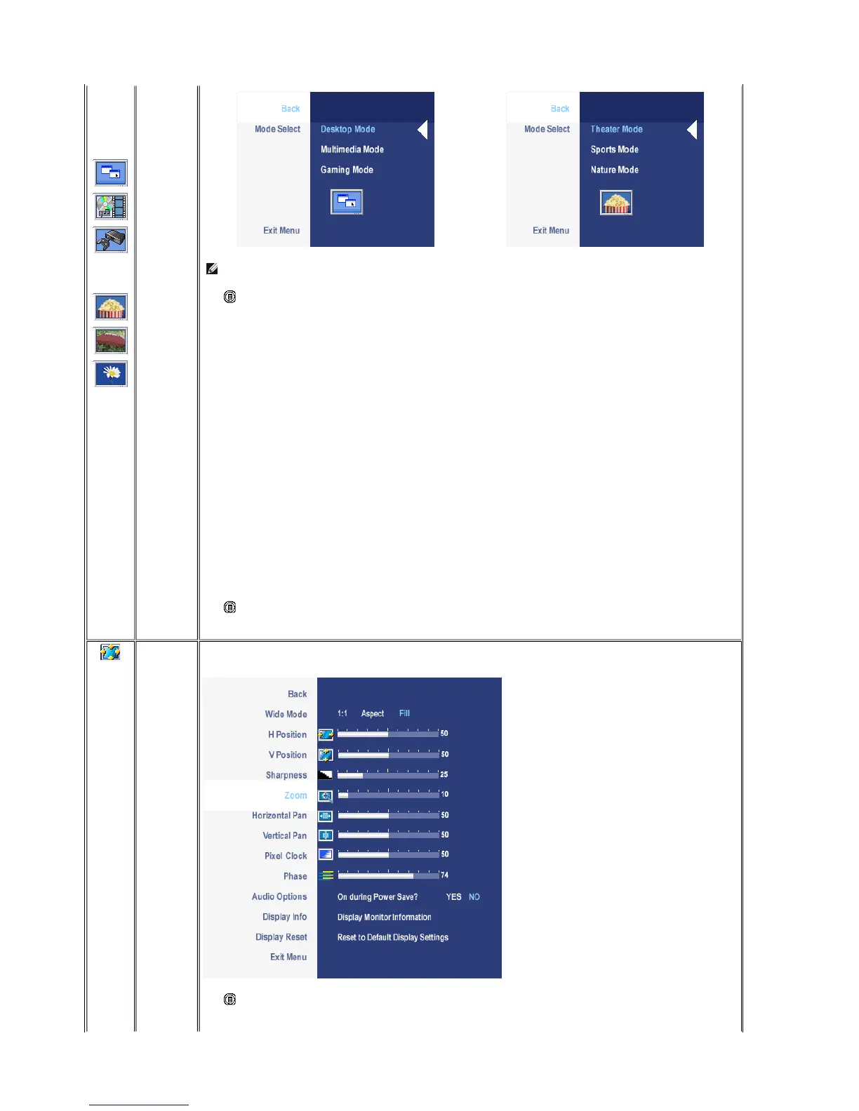 NOTE: Image modes are different between the VGA/DVI-D and Video inputs