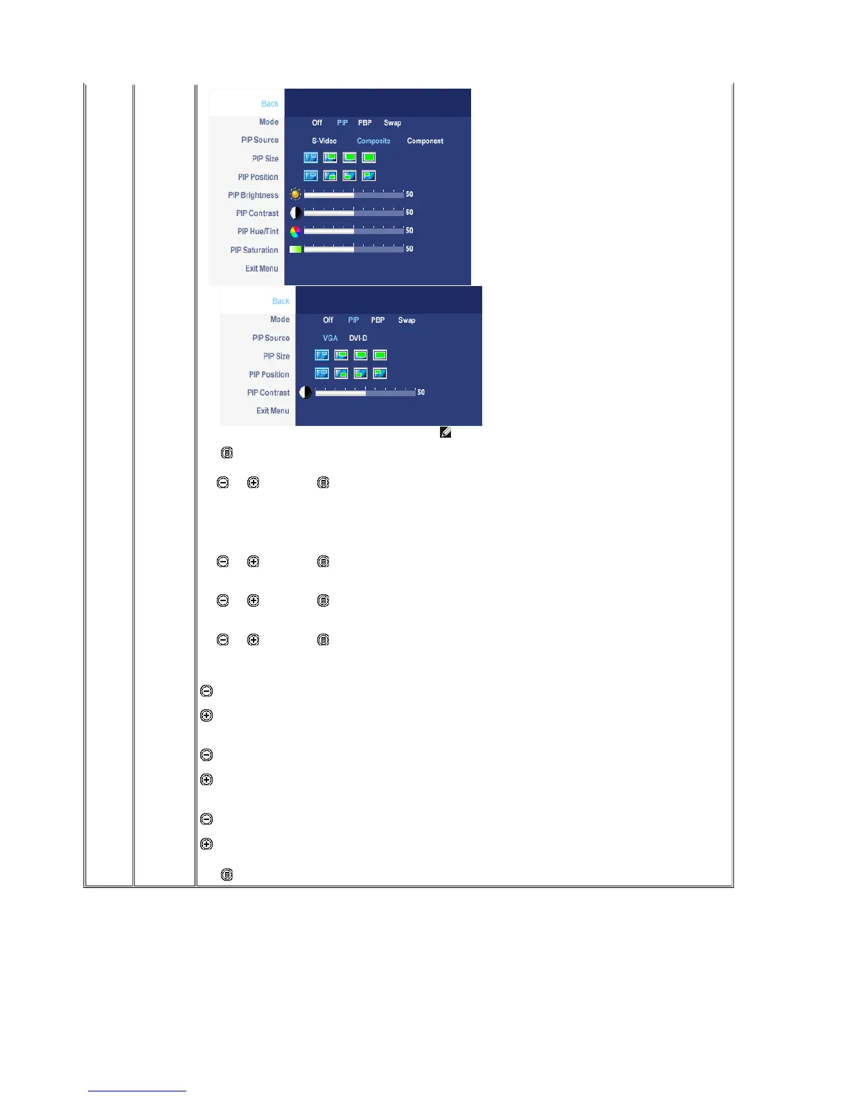 Select an input signal for PIP/PBP. (VGA/DVI/S-Video/Composite/Component)