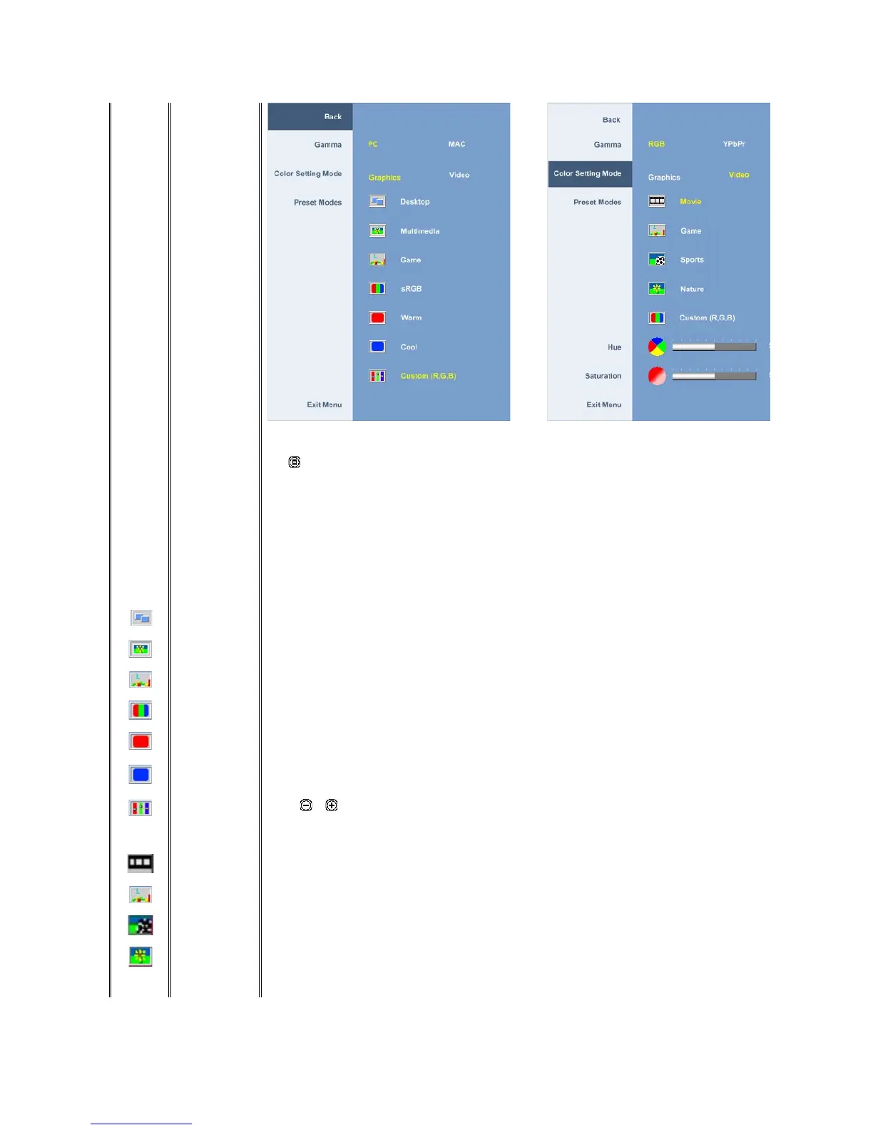 You can choose between a Graphics and a Video mode. If your computer is connected to your monitor, choose Graphics. If a DVD, STB, or VCR is connected to