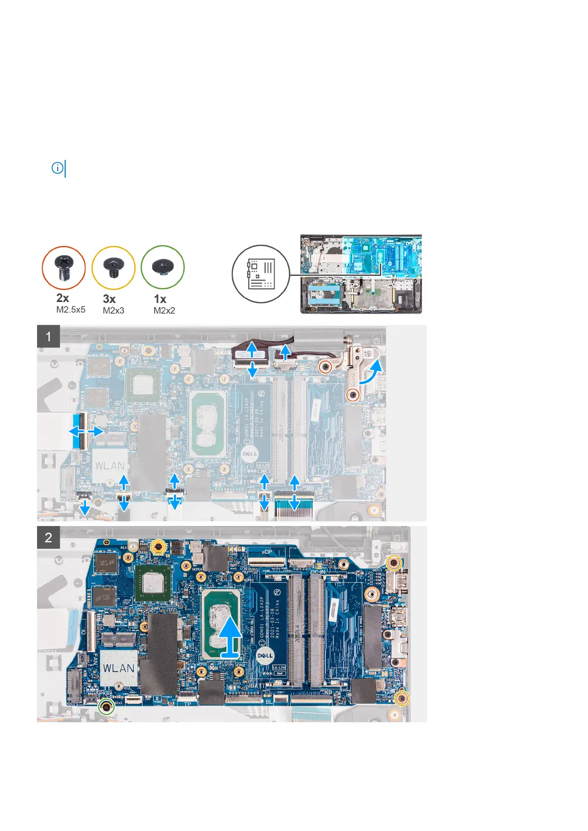The following images indicate the location of the system board and provides a visual representation of the removal procedure.