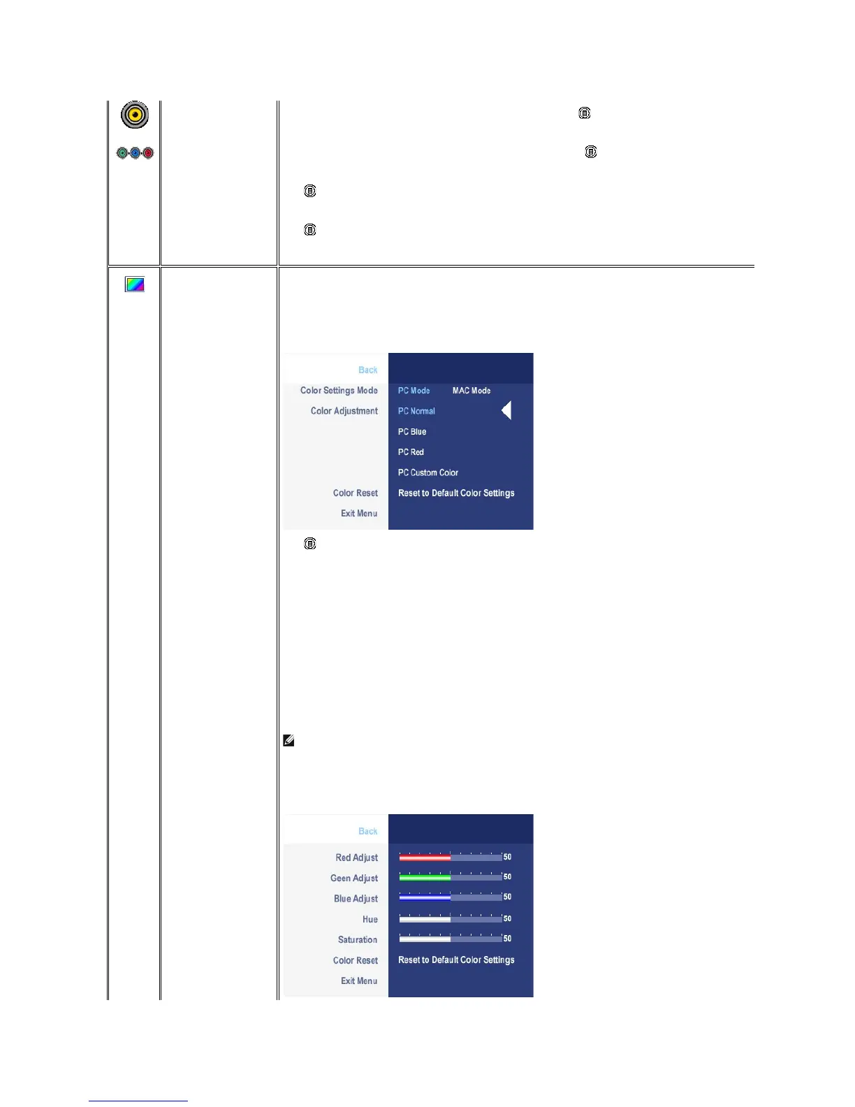 Color Settings adjusts the color setting mode and color temperature.