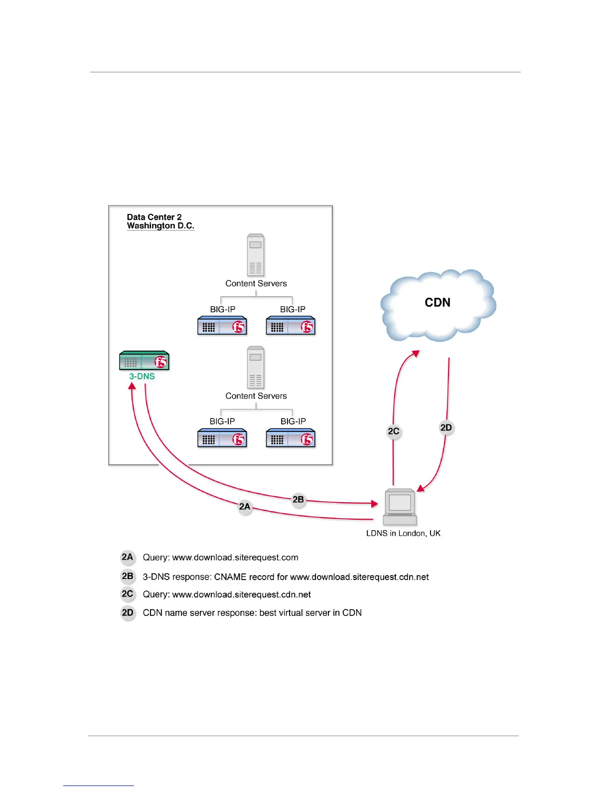 CDN provider (2C). The CDN provider’s DNS server responds with the IP