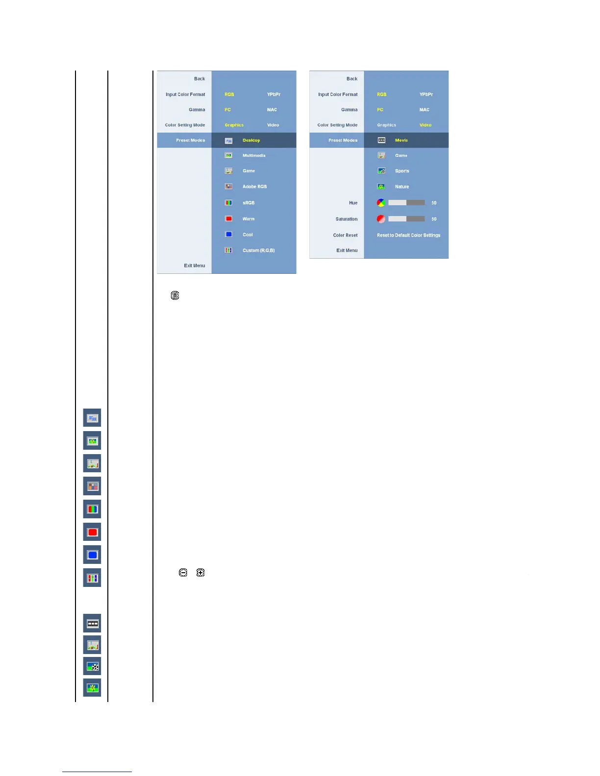 Choose the RGB option if monitor is connected to a PC or a DVD using a VGA or a DVI cable. Choose the YPbPr option if monitor is