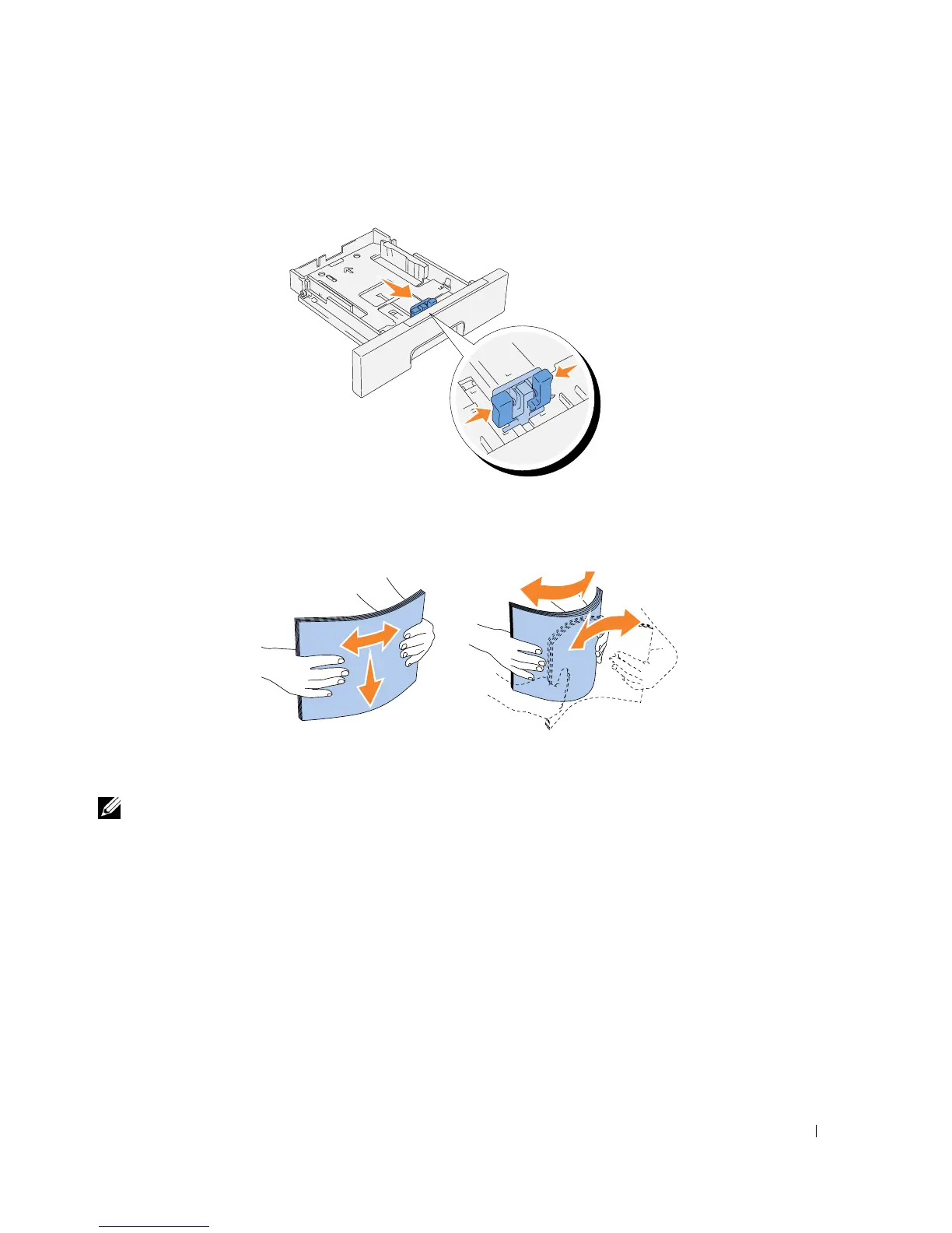 Before loading the print media, flex the sheets back and forth, and then fan them. Straighten