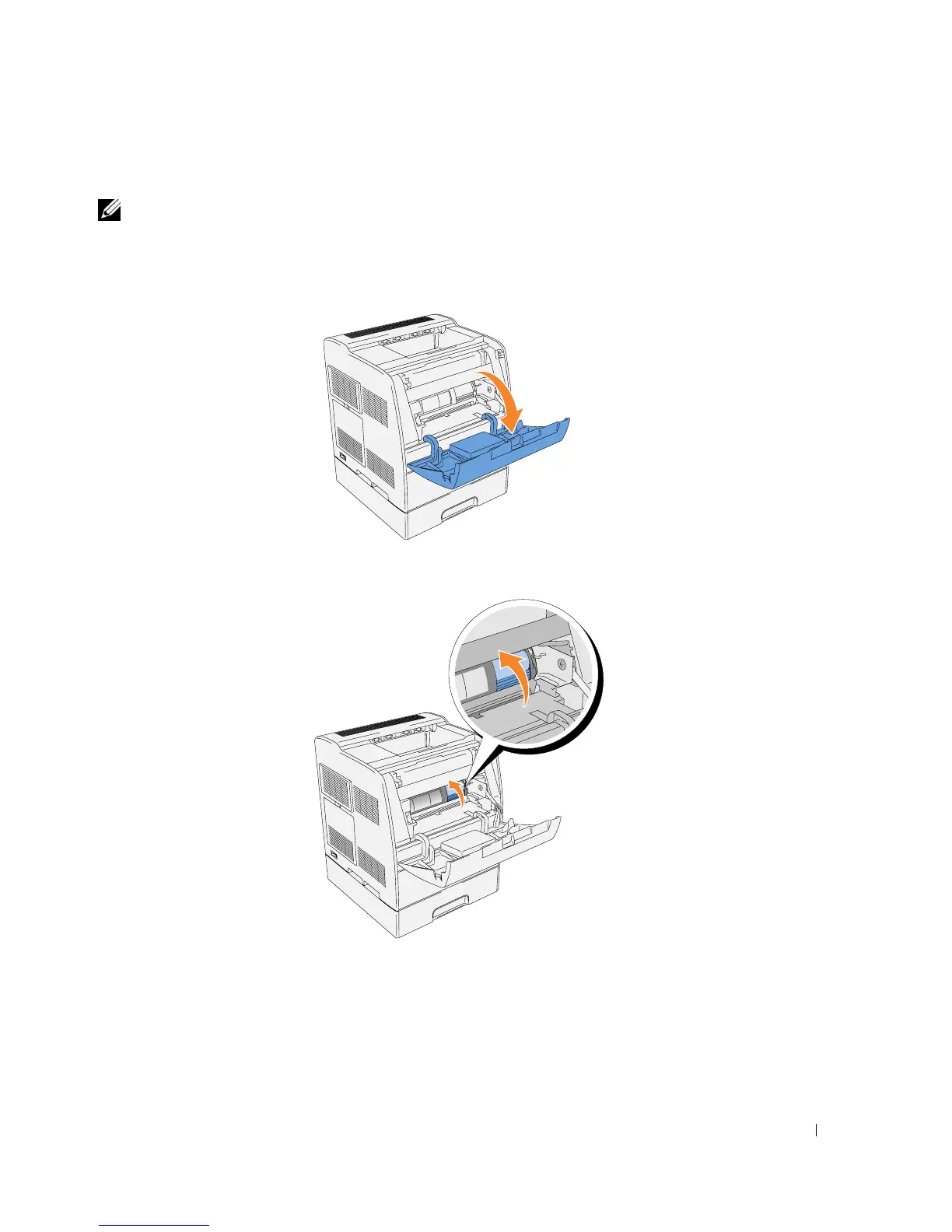 NOTE: Remove any print jobs from the center output tray and close the multipurpose feeder cover