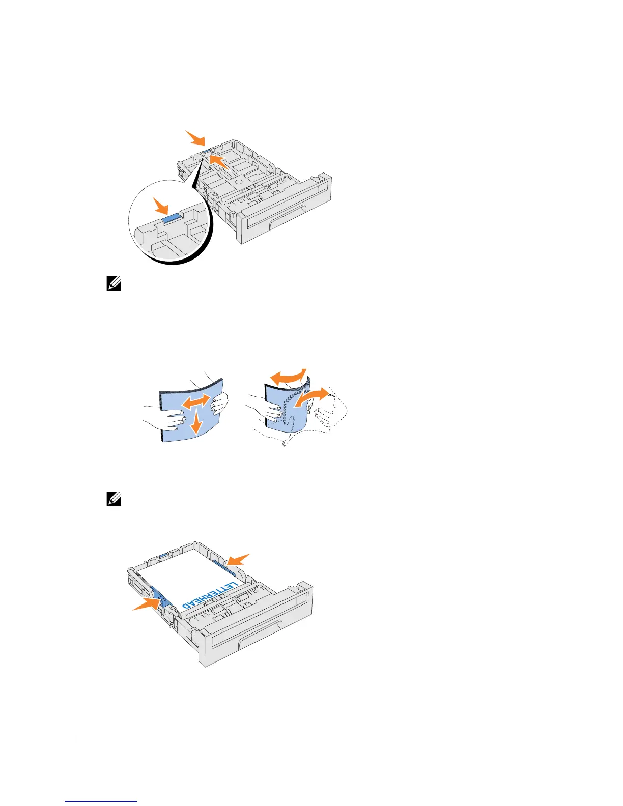 Before loading the print media, flex the sheets back and forth, and then fan them. Straighten
