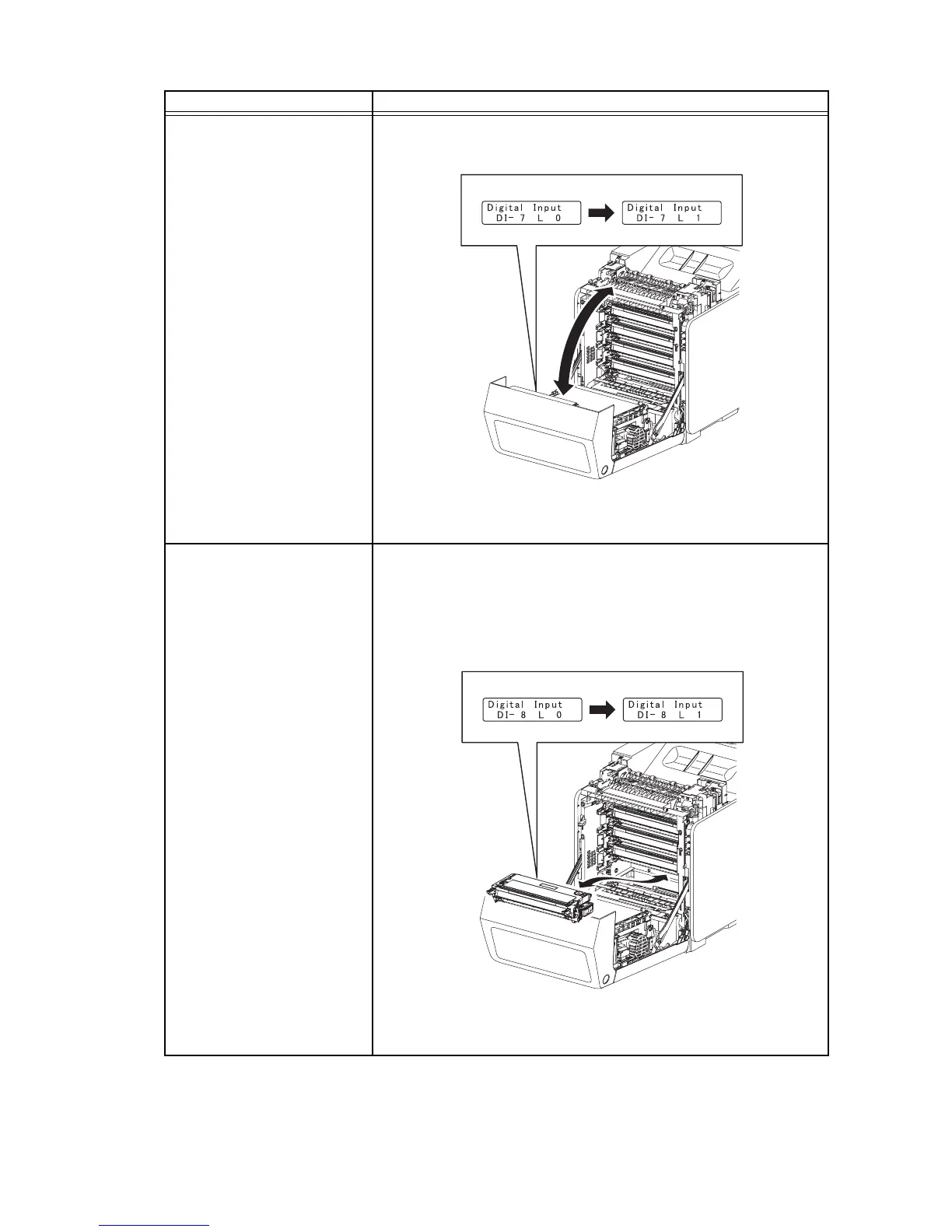 front cover open, remove all toner cartridges, and cover the drum to