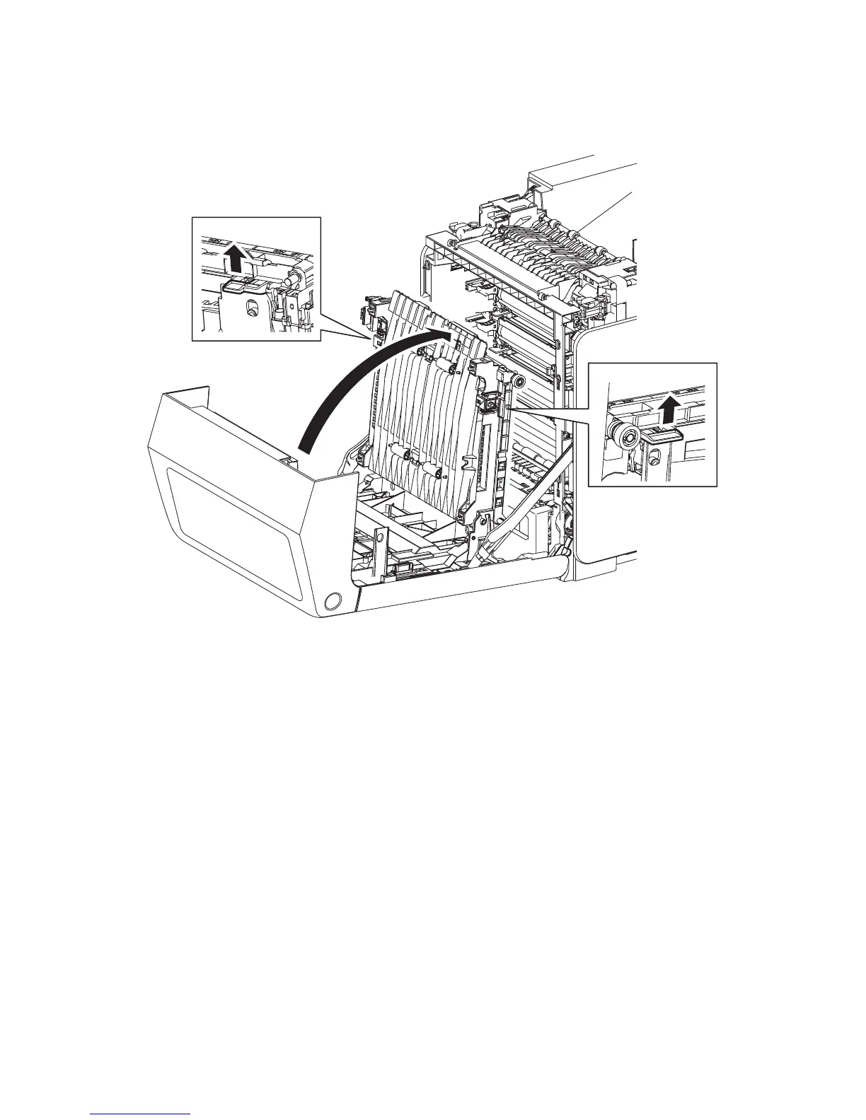2) Release the lock by pulling up the levers on the left and right sides of the TRANSFER BELT