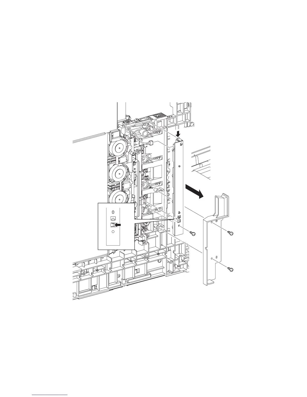 9) Remove the DUCT SIDE L from the printer.