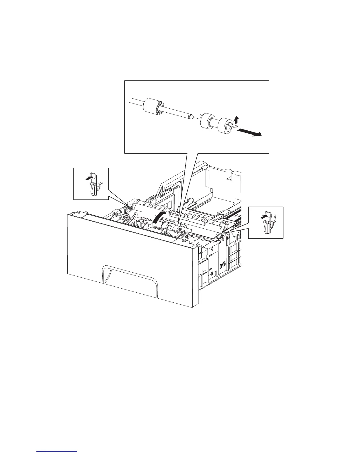 3) Release the hook of the 550 TRAY SEPARATOR ROLLER (PL12.5.17), and then remove the