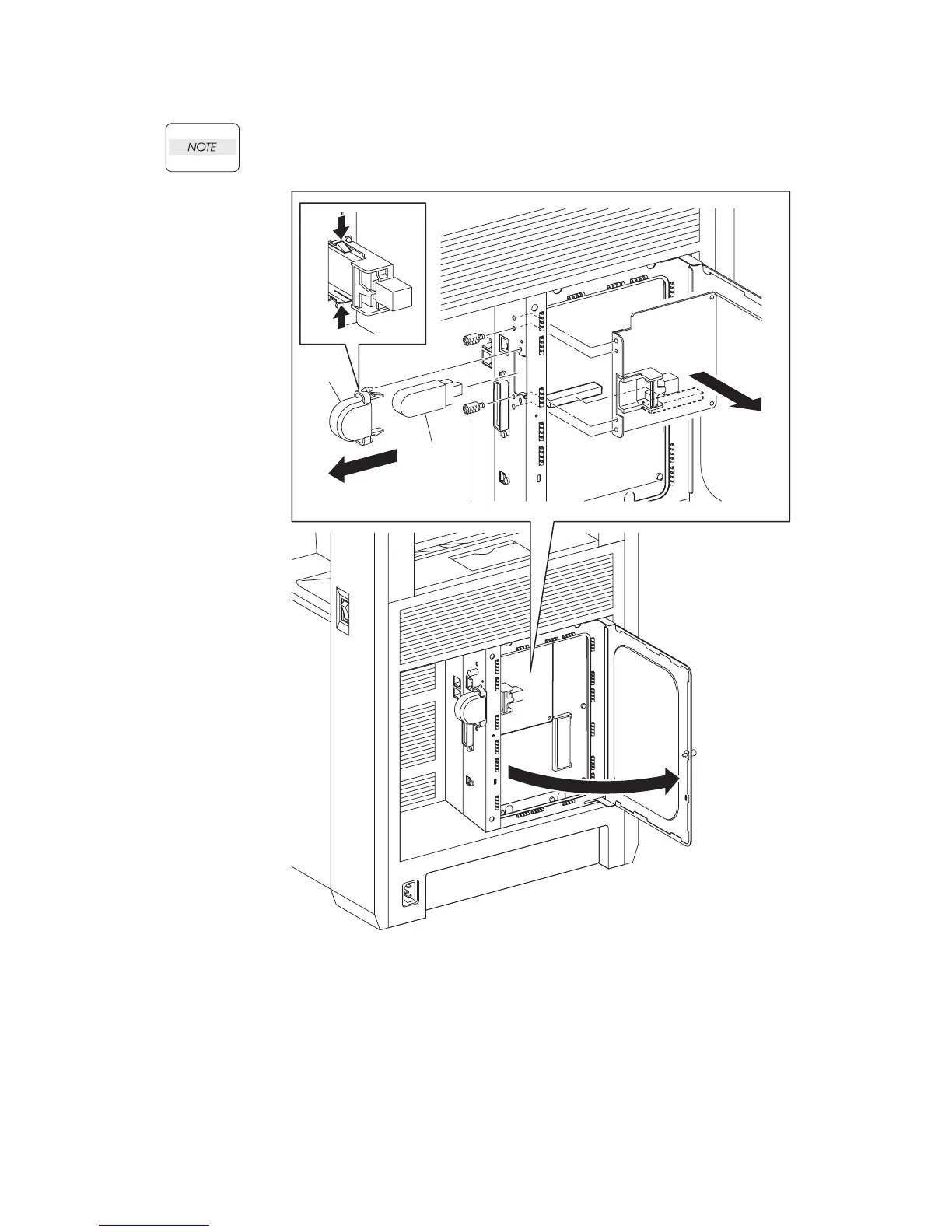 3) Remove the WIRELESS PRINTER ADAPTER (PL9.1.32) from the MULTI PROTOCOL