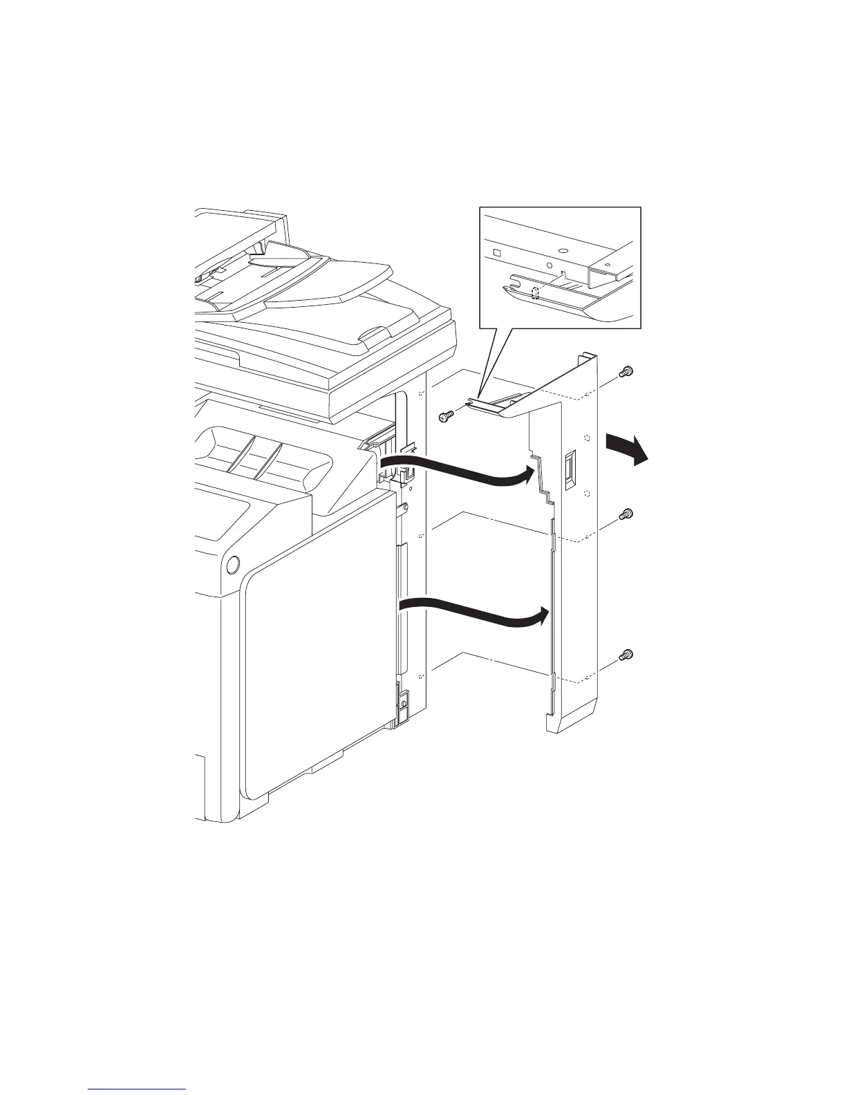 4) Remove the four screws (silver, 6mm) that fix the COVER POLE R (PL13.1.8) to the printer.