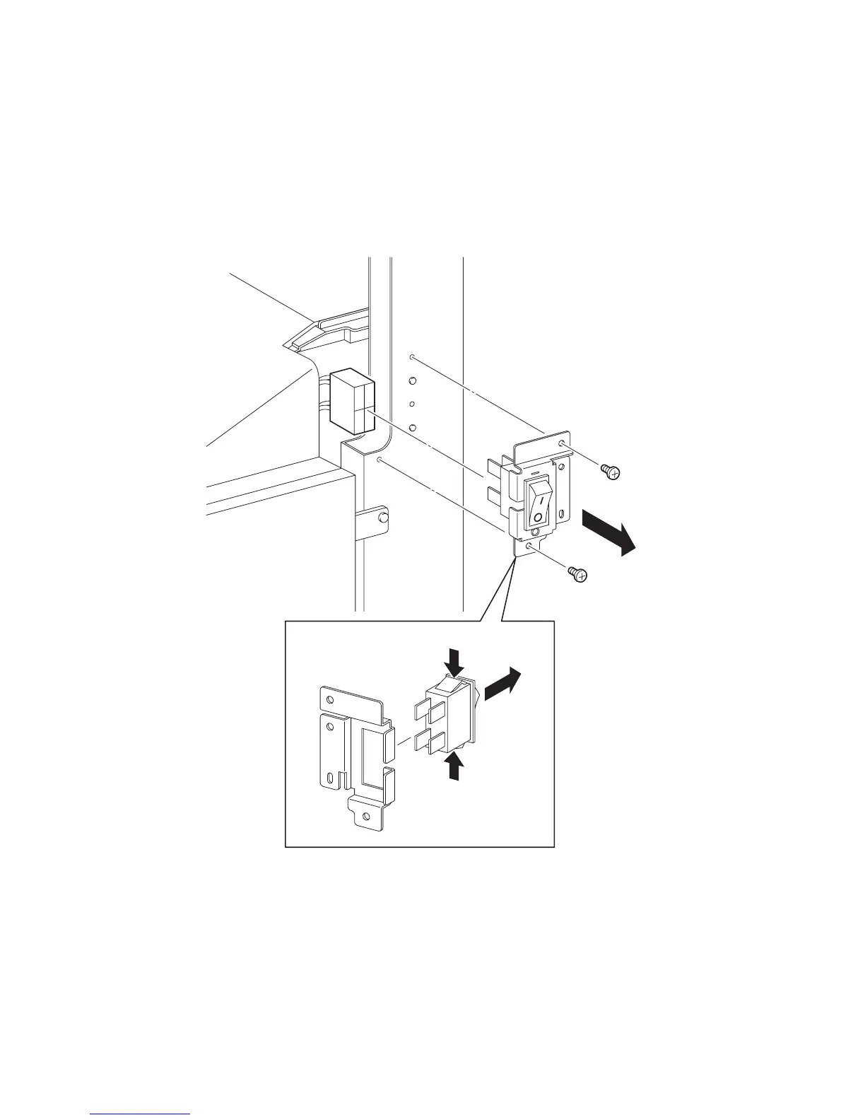 7) Remove the BRACKET MAIN SW from the printer together with the POWER SWITCH.
