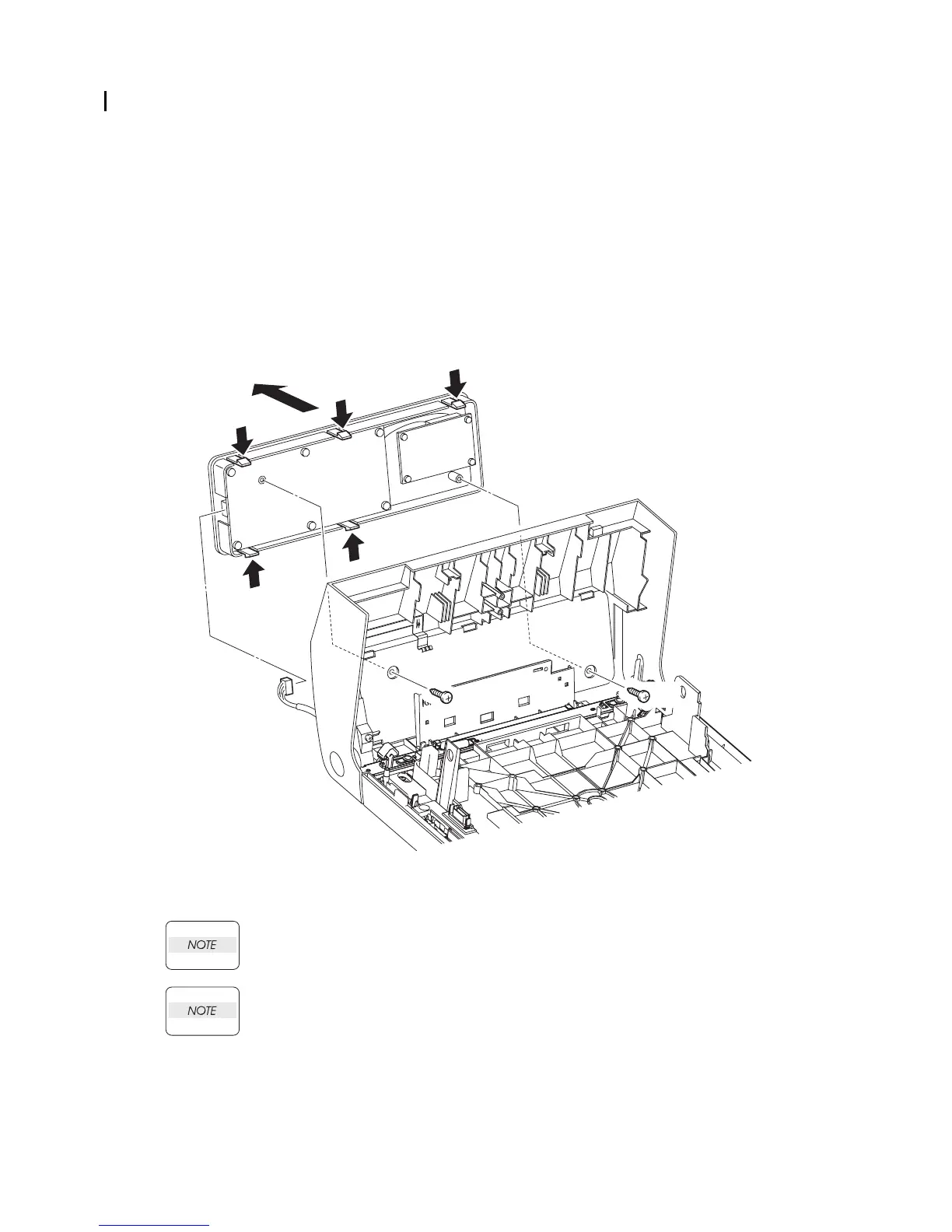 10) Remove the OPERATOR PANEL from the FRONT COVER by releasing the five hooks.