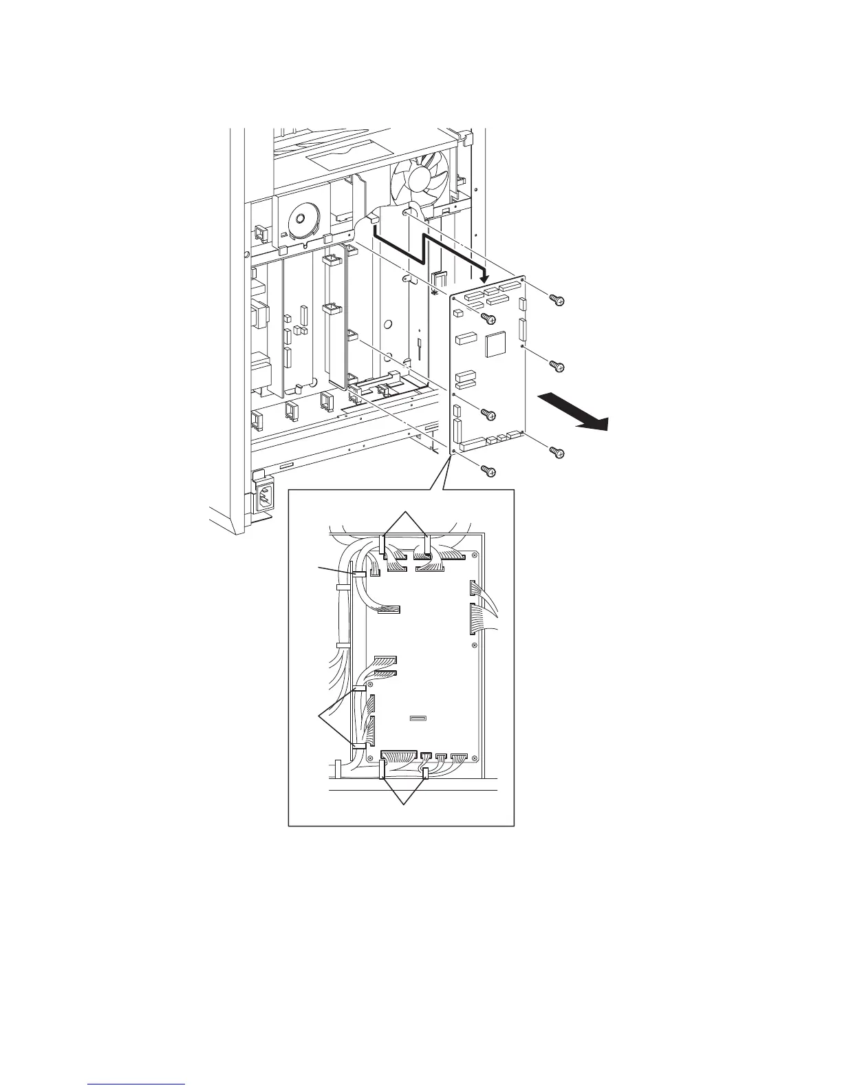 25) Remove the six screws (silver, 6mm) that fix the MACHINE CONTROL UNIT to the printer.