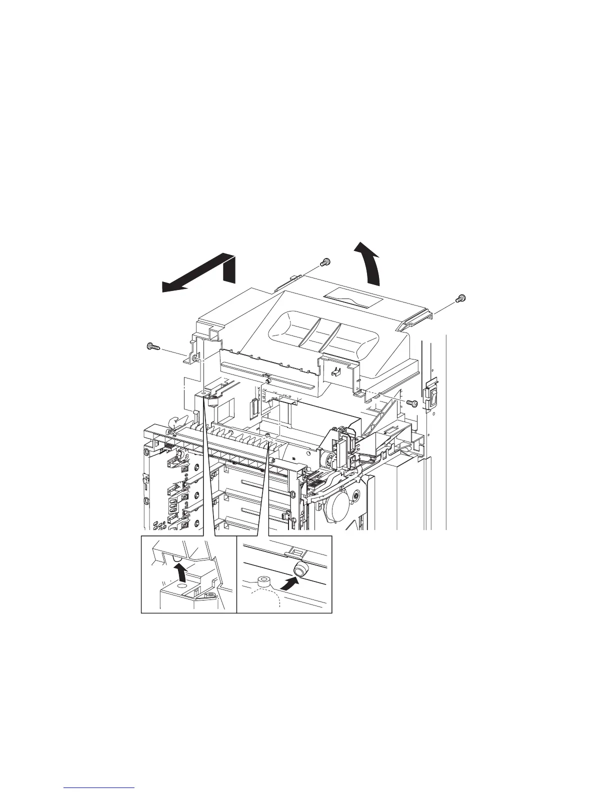 13) Lift the TOP COVER and slide it forward. Remove the TOP COVER from the printer.