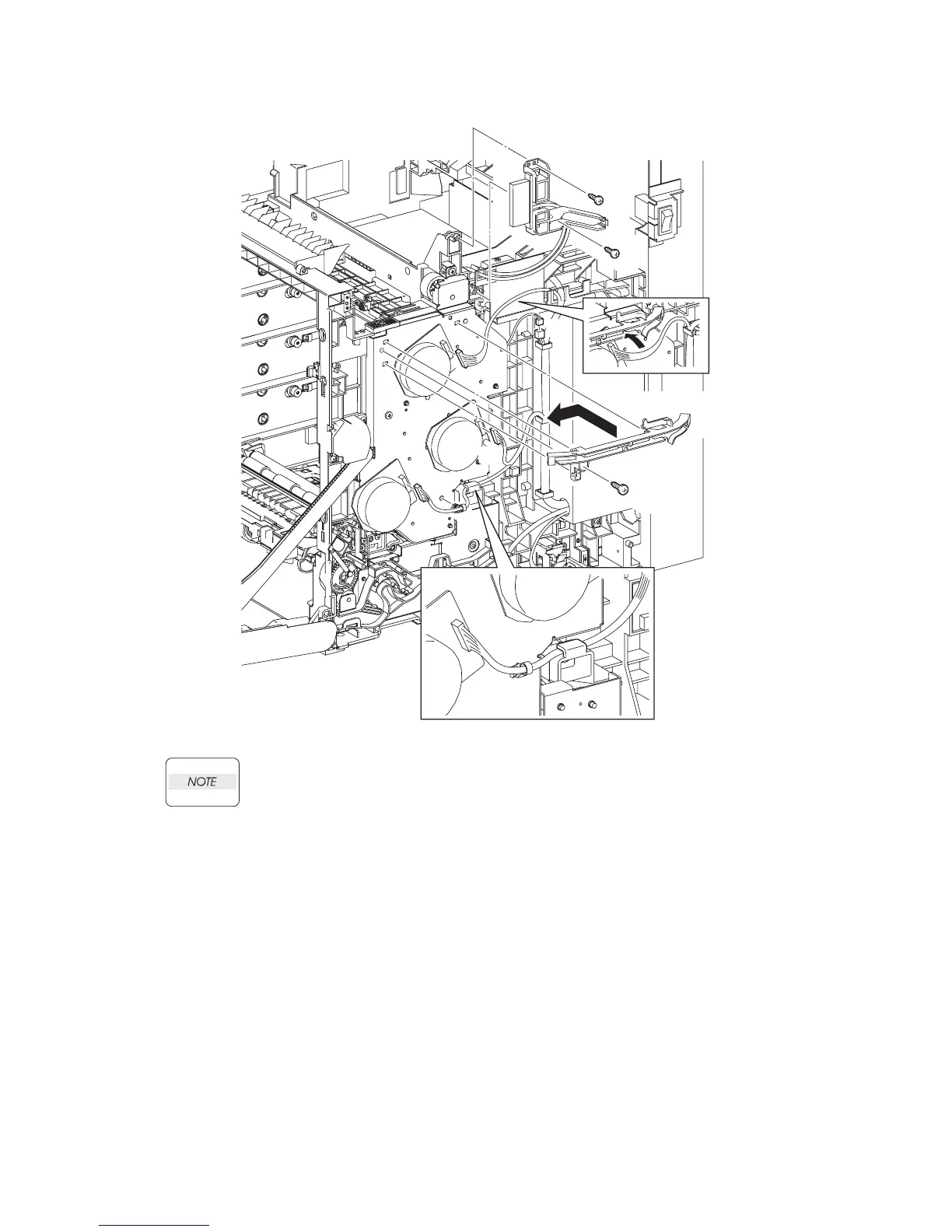 to the DEVE MOTOR must be routed through the hook above the FEED DRIVE ASSEM-