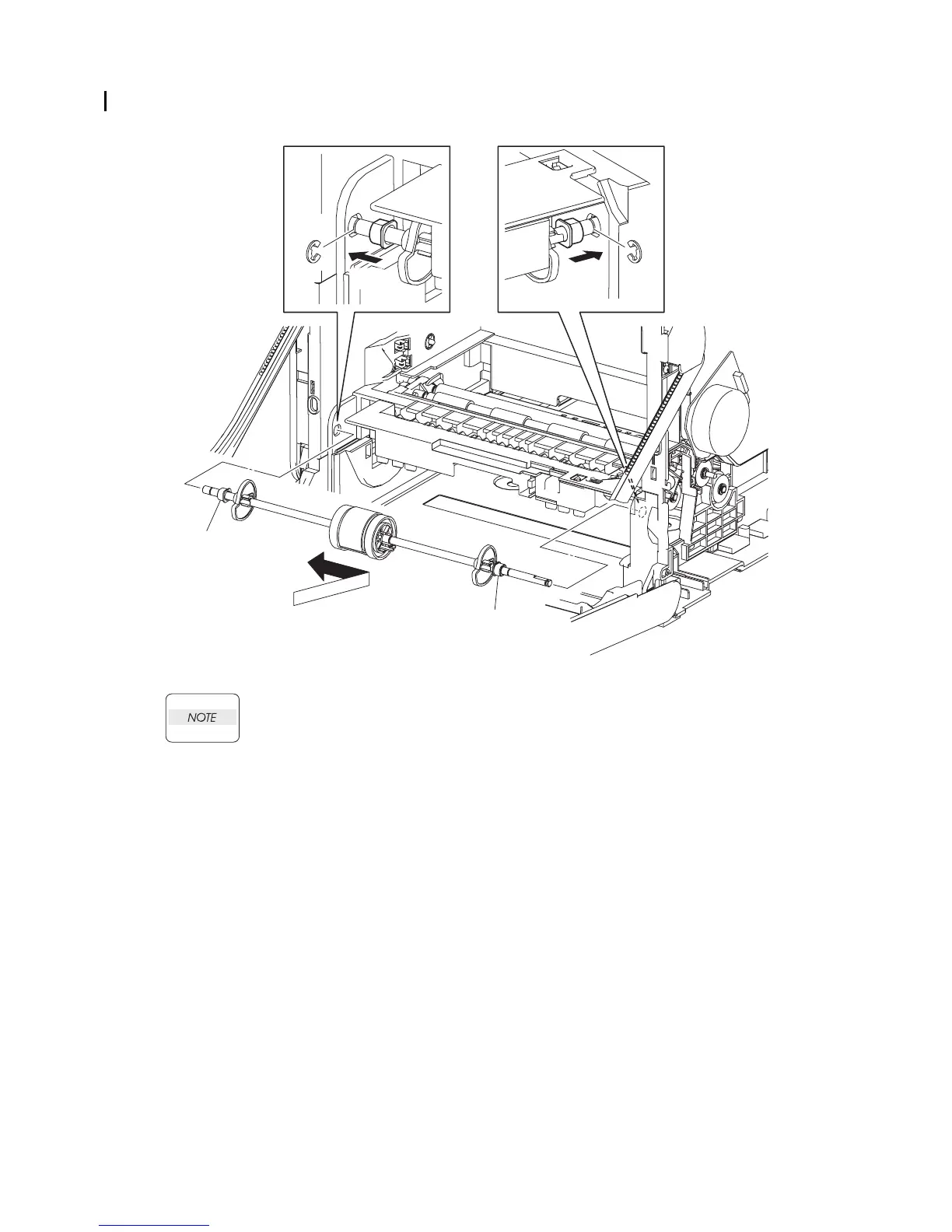 14) Replace the ROLL ASSY MSI to the printer by inserting the right and left ends of the ROLL
