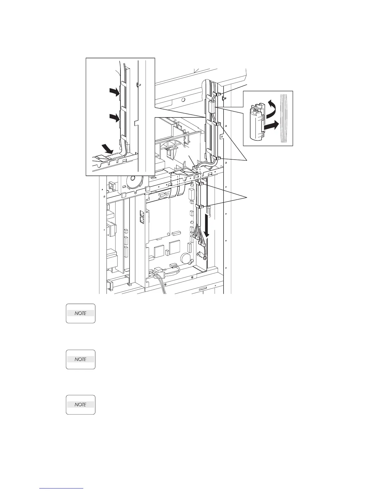 9) Secure the harness of the ADF SCANNER ASSY with the six clamps.
