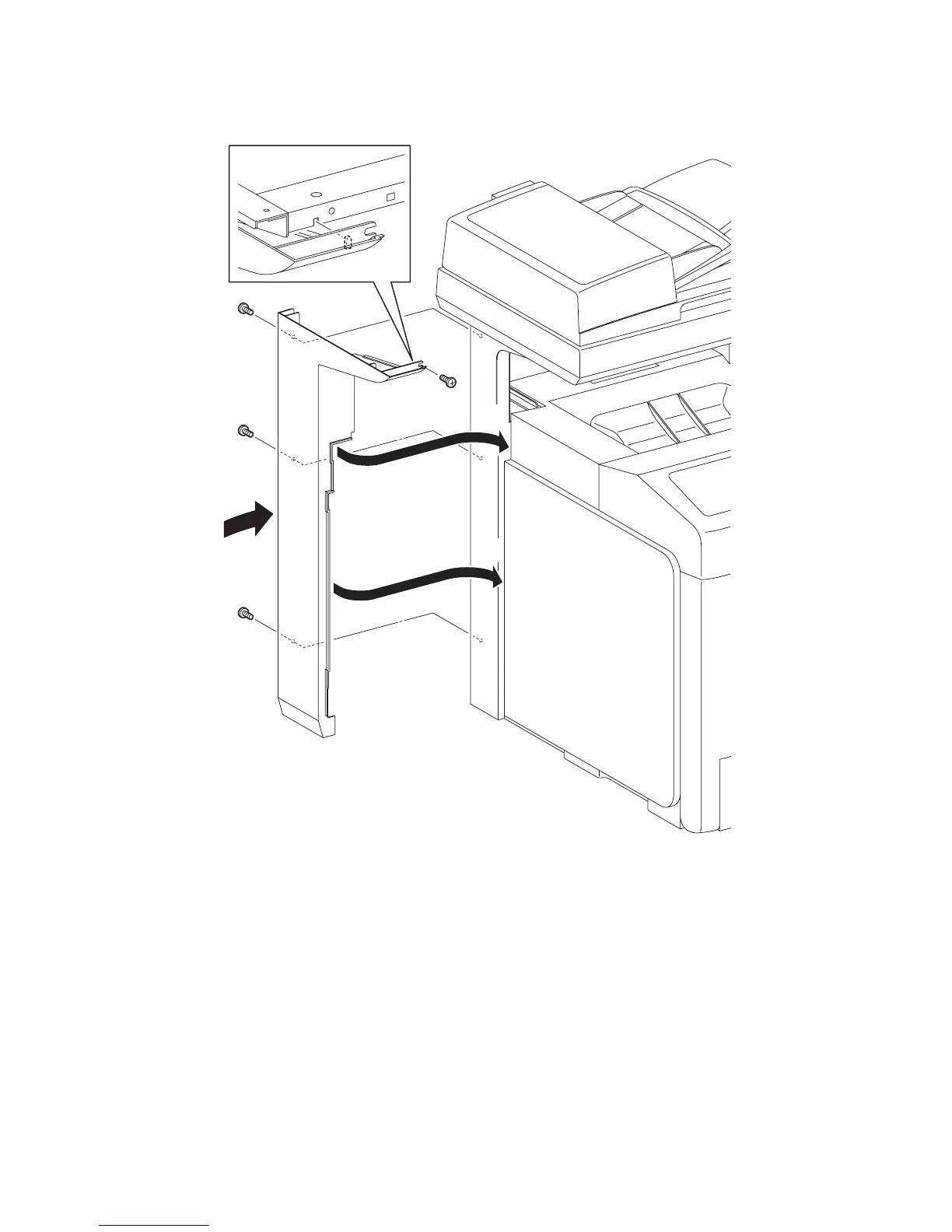 3) Secure the COVER POLE L to the printer using the four screws (silver, 6mm).