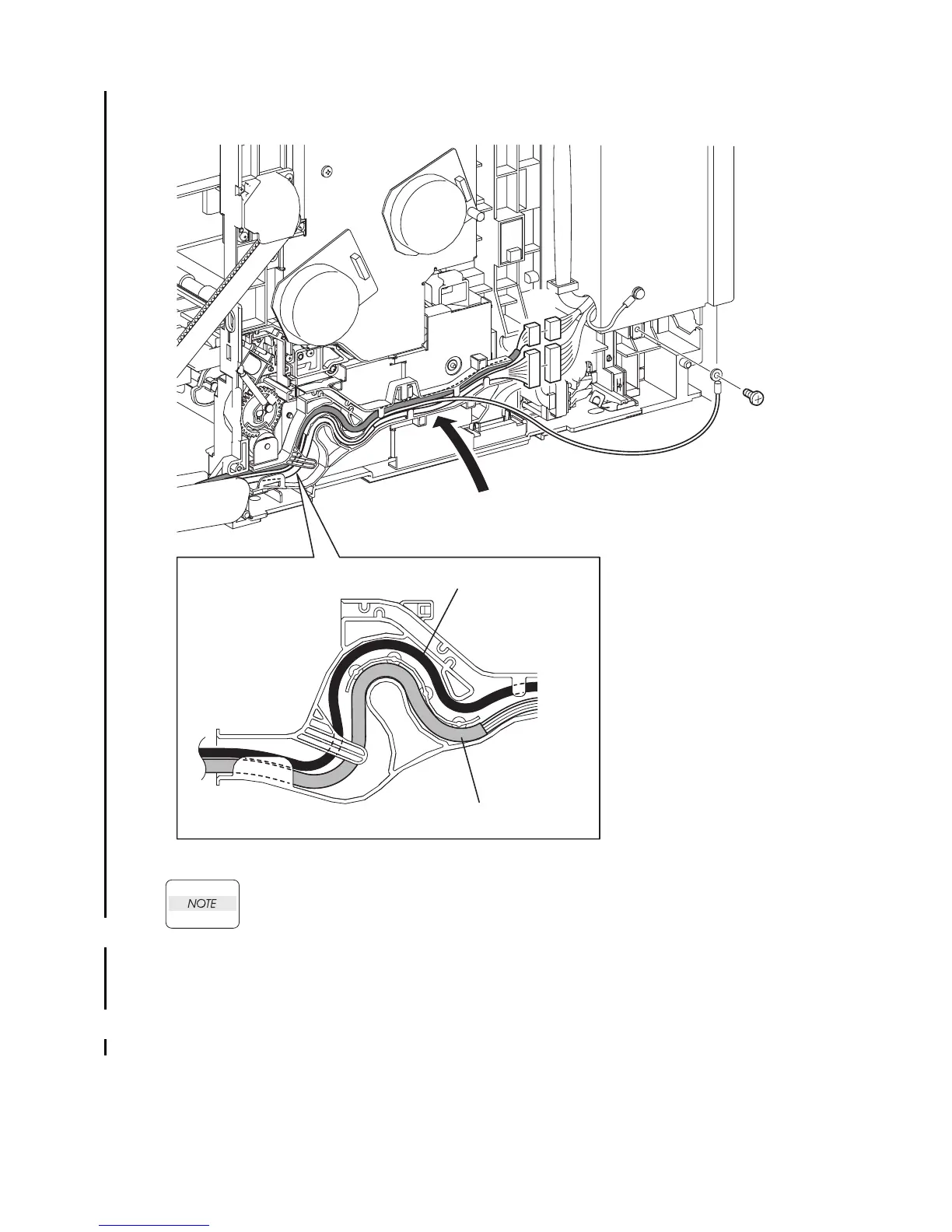 7) Secure the grounding wire of the HARNESS ASSY FRONT COVER to the printer using the