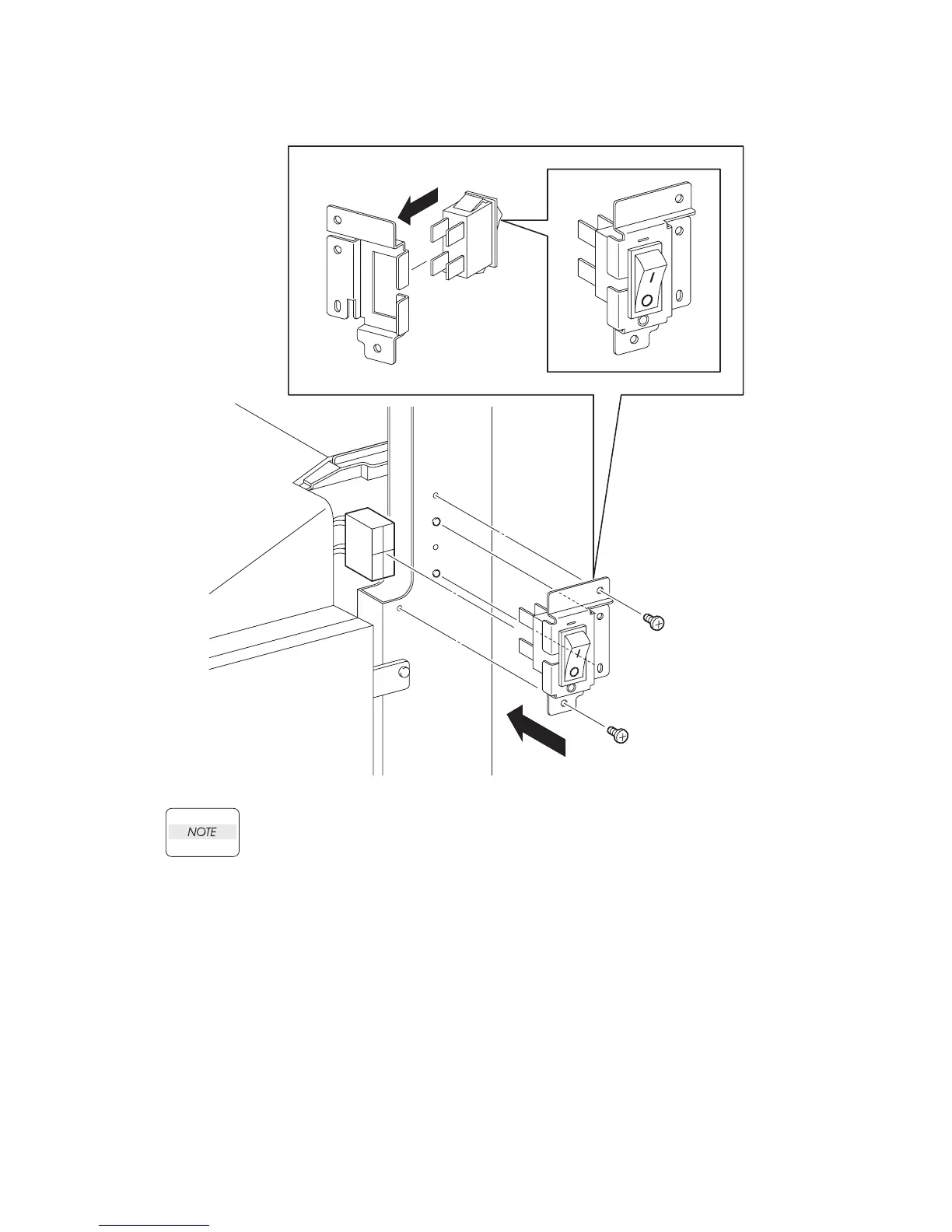 3) Secure the BRACKET MAIN SW to the printer using the two screws (silver, 6mm).