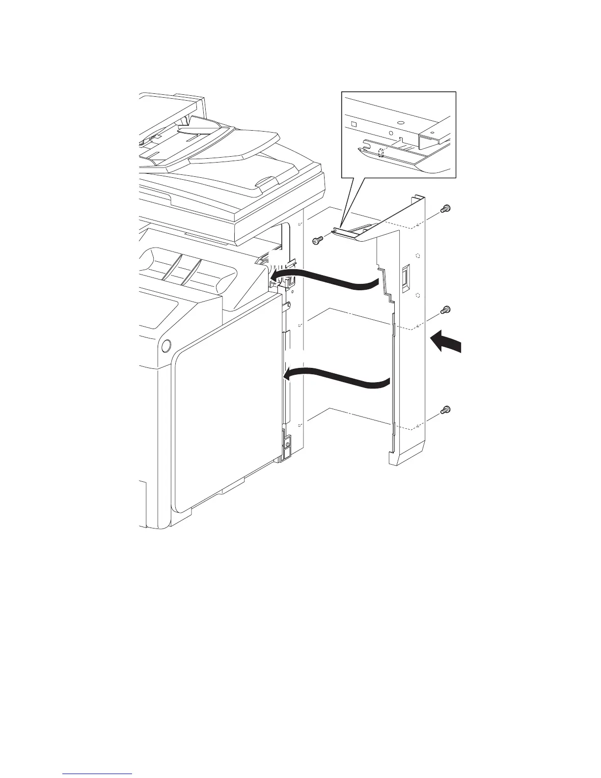 3) Secure the COVER POLE R to the printer using the four screws (silver, 6mm).