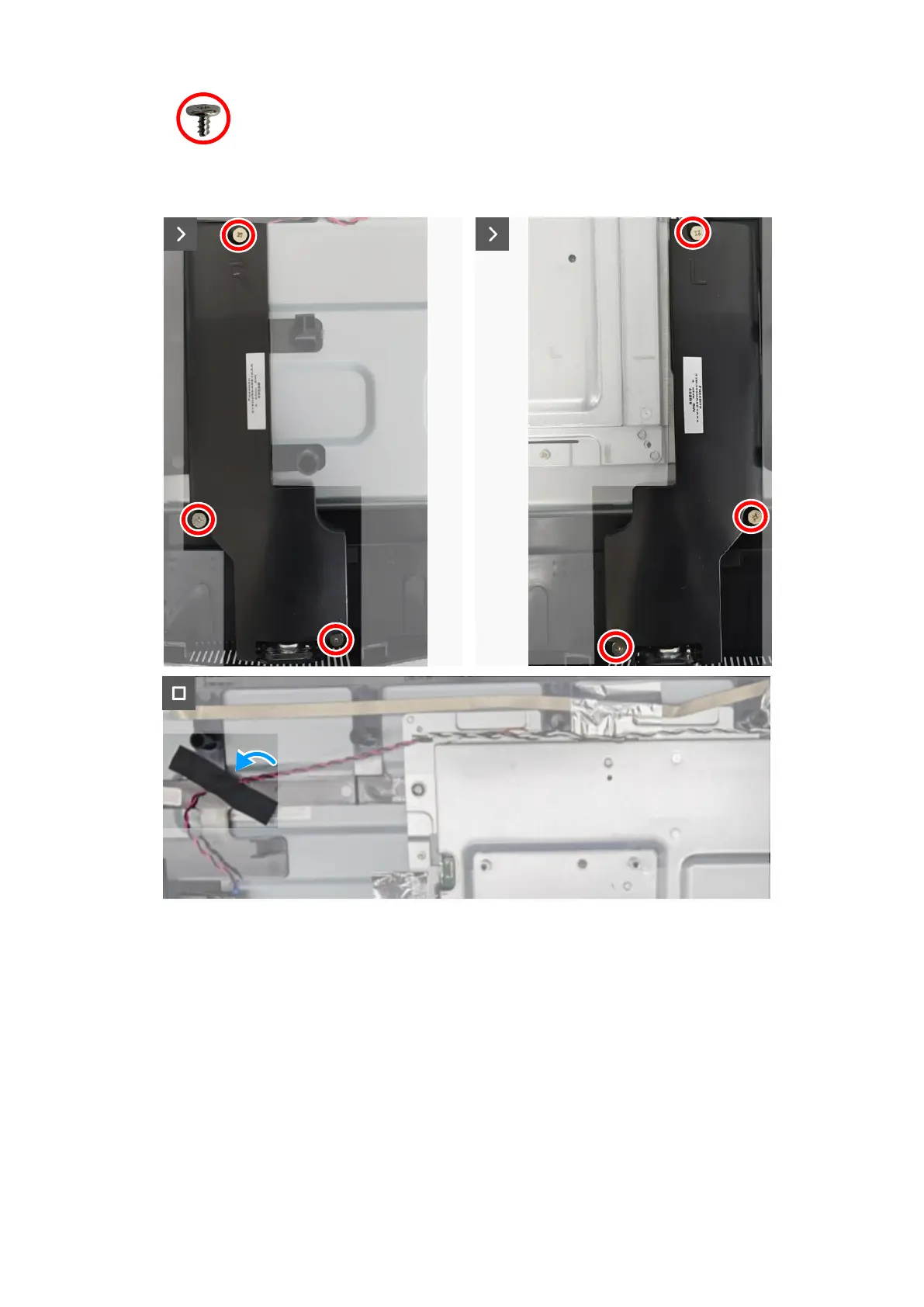 3. Replace the six screws (M3x6) to secure the speakers to the middle frame.