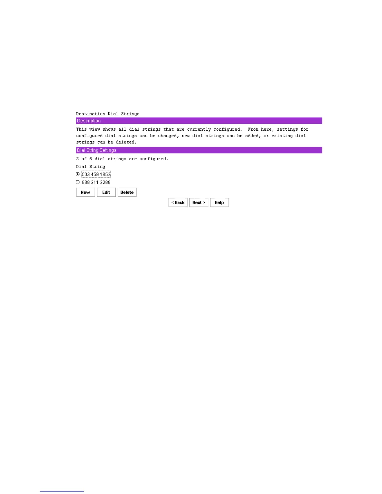 click OK to confirm deleting the dial string, the Destination Dial Strings screen is redisplayed