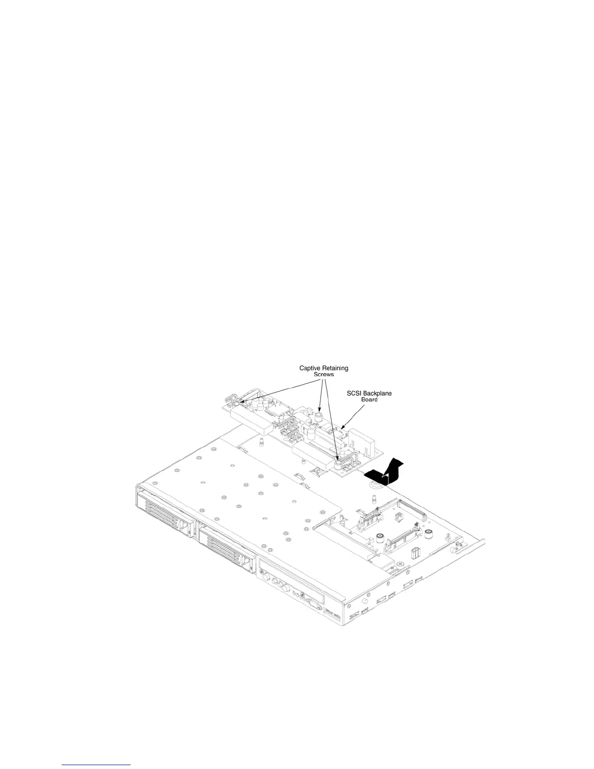 7. To remove the SCSI backplane board, loosen the three captive screws that secure the SCSI