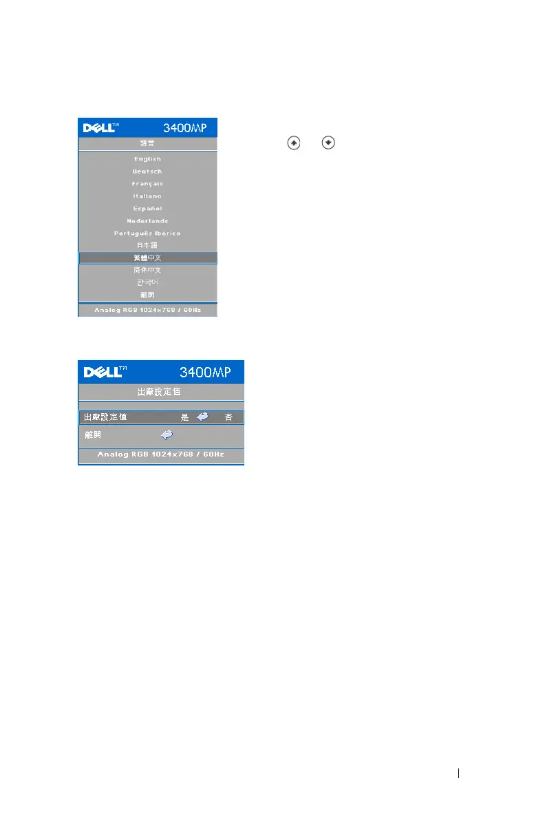 Dell 3400MP - 語言功能表; 出廠設定值功能表